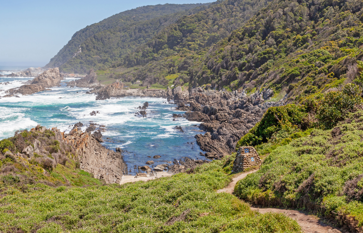 - Otter Trail: South Africa’s most iconic 5-day hiking trail along the Garden Route. The Otter is a mix of forest, cliff paths, and river crossings, with the Indian Ocean as your constant backdrop. Each day ends in a simple hut close to the shoreline, giving you the chance to fall asleep to the sound of waves. Managed by SANParks.